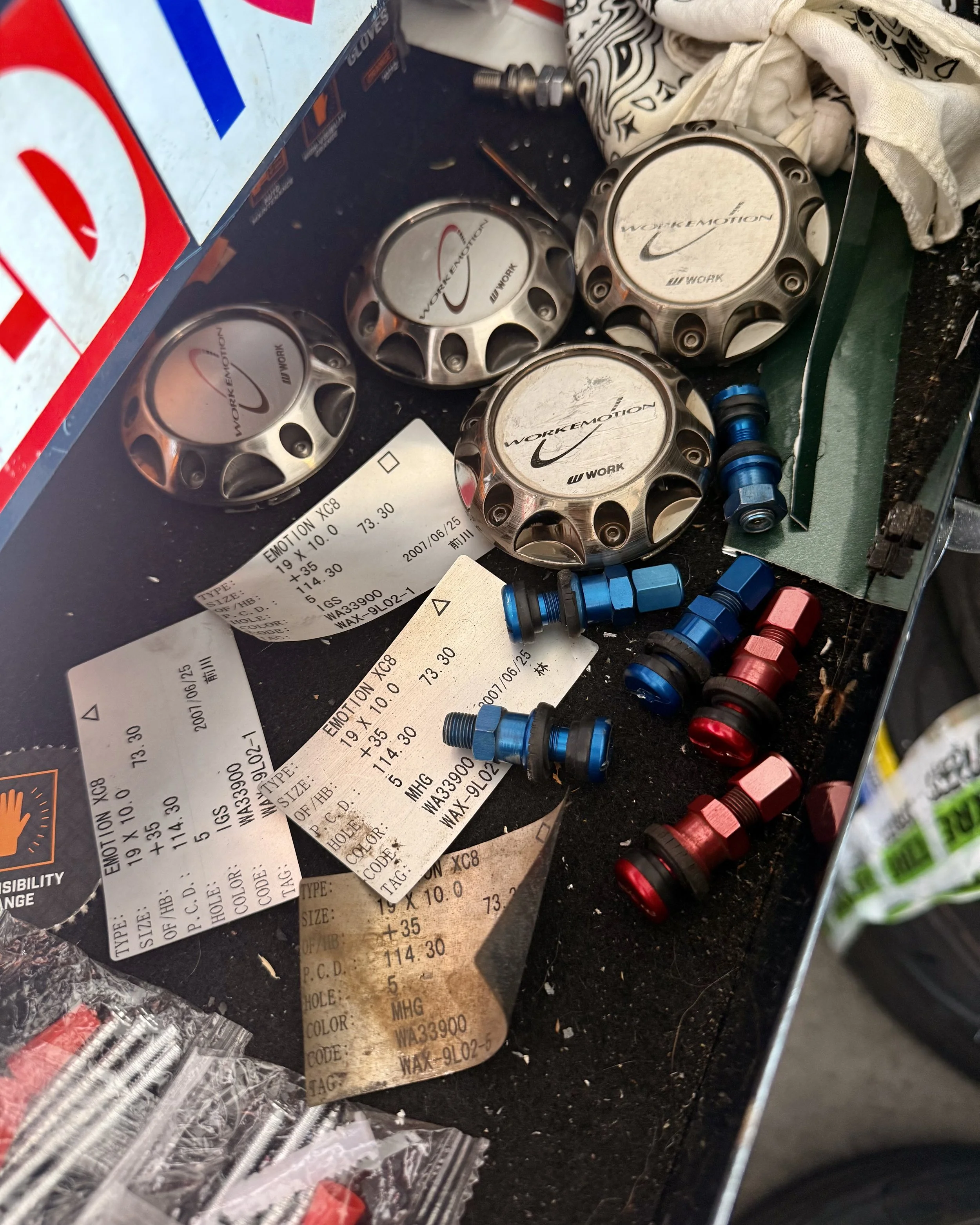 I’ve been a fan of XC8s for a long time and I loved how they looked on the car. Felt very period correct. AND they made 19s! Took me about a year to source, but I ended up with 2 pairs of 19x10 XC8s (shoutout to Muk @noodles_dad for helping import, and Connor for the other pair). Crazy enough, both pairs were made on the exact same day in 2007!