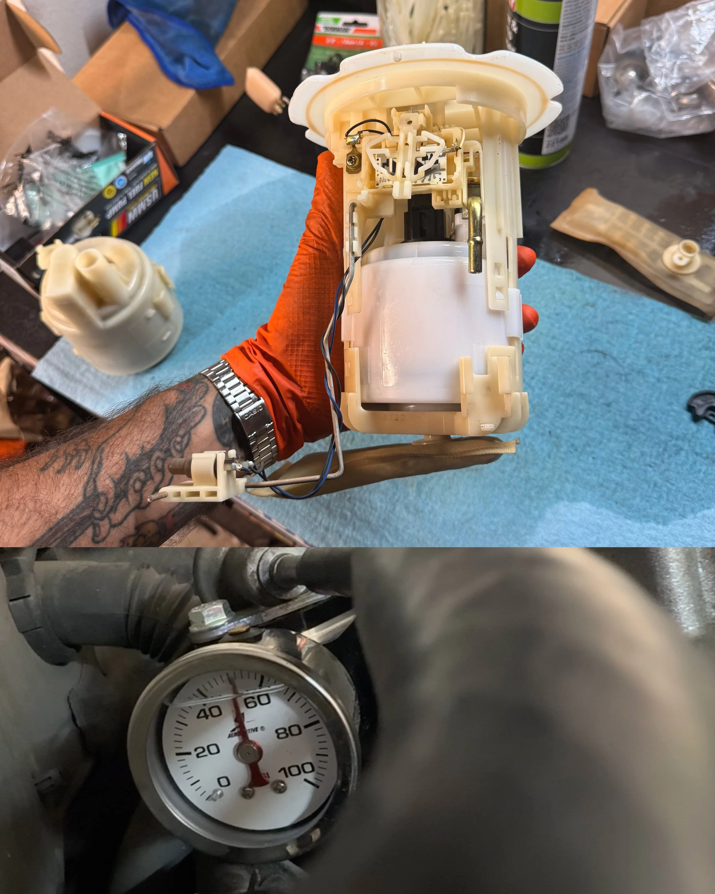New fuel pump, new fuel filter, fuel block with gauge.